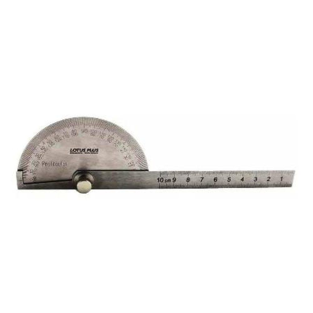 Transferidor de grau tipo meia lua, em aço inoxidável, para medidas precisas de ângulo. graduação de 1 grau, escala de 0 a 180 graus.