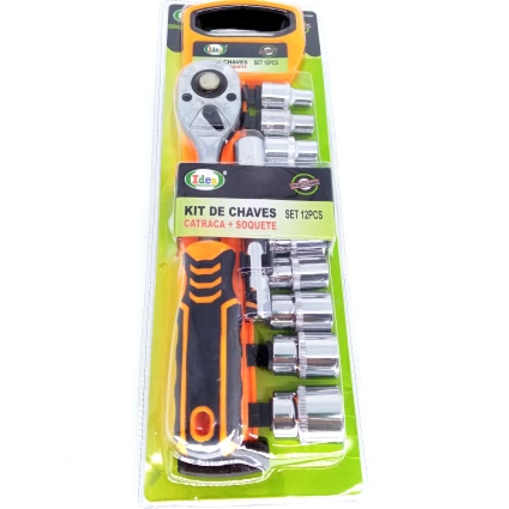 Jogo De Chave De Catraca Sextavado 1/2 com 12 peças nas medidas conforme descrição abaixo.