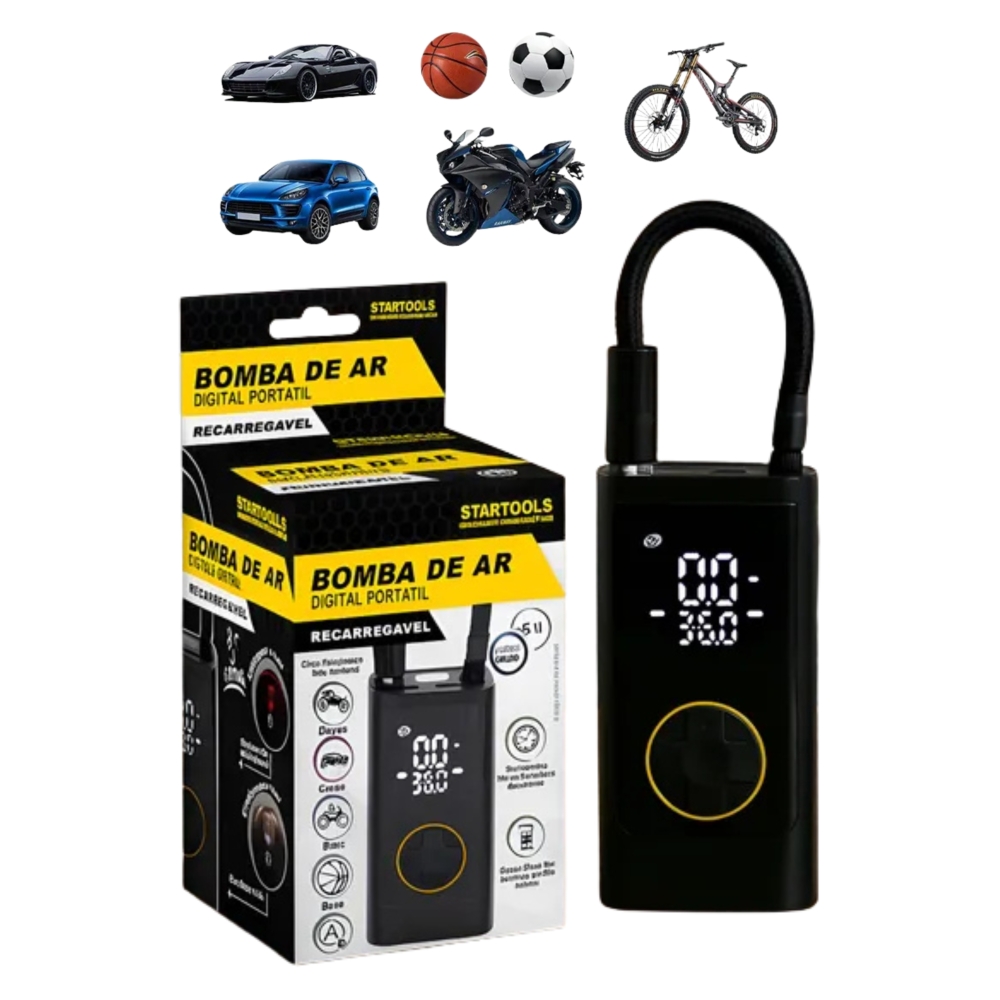 COMPRESSOR DE AR MINI DIG. C/CALIBRADOR (REGARREGAVEL)