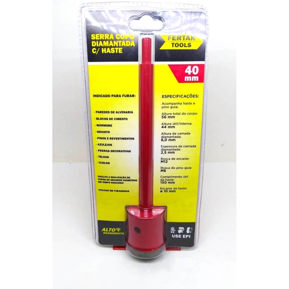 SERRA COPO DIAMANTADA C/HASTE - 40MM
