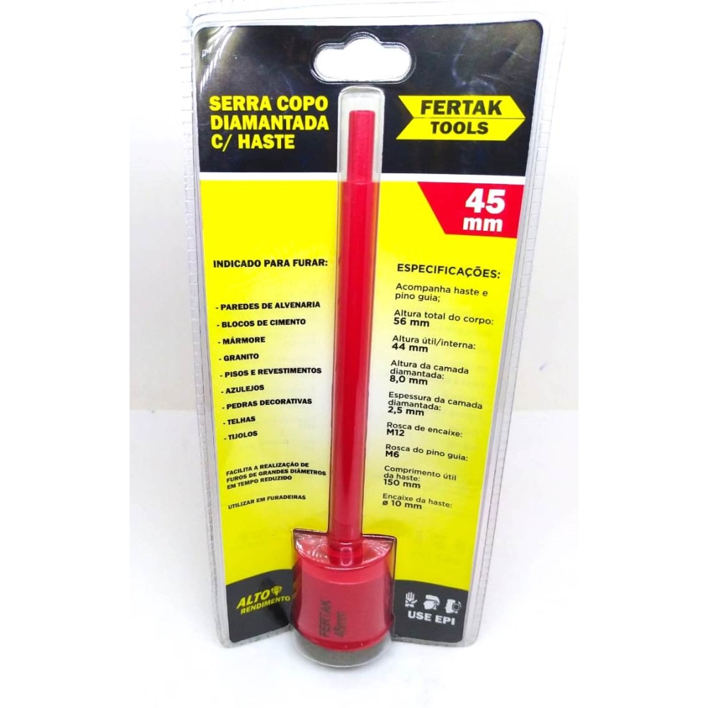 SERRA COPO DIAMANTADA C/HASTE - 45MM