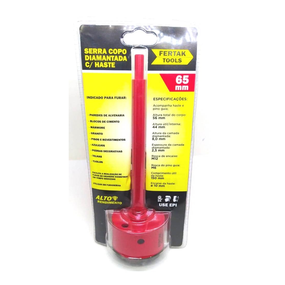 SERRA COPO DIAMANTADA C/HASTE - 65MM